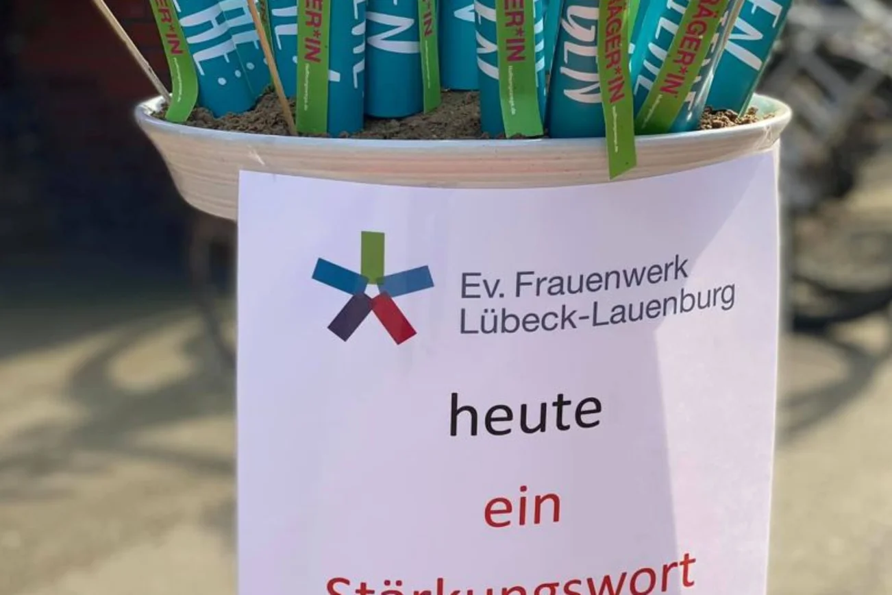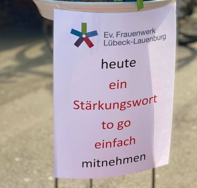Silke Meyer verteilt heute von 15 -17 Uhr Stärkungsworte to go vor dem Frauenwerk im Steinrader Weg 11 in Lübeck.
